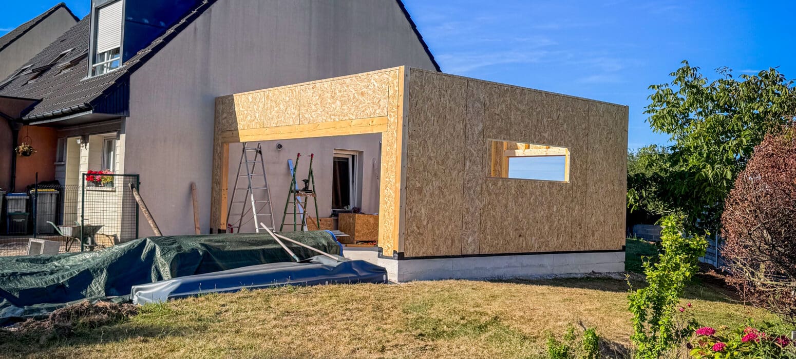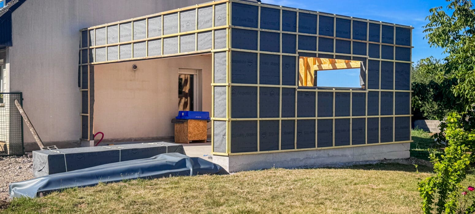 Pour ce projet, notre client a choisi de construire son garage en auto-construction, ce qui lui permettait de maîtriser entièrement le rythme et les étapes de réalisation. Nous avons donc adapté notre prestation pour qu’il puisse se procurer lui-même le bardage, en fonction de ses préférences esthétiques et de son budget. Toutes nos félicitations pour sa structure bois !